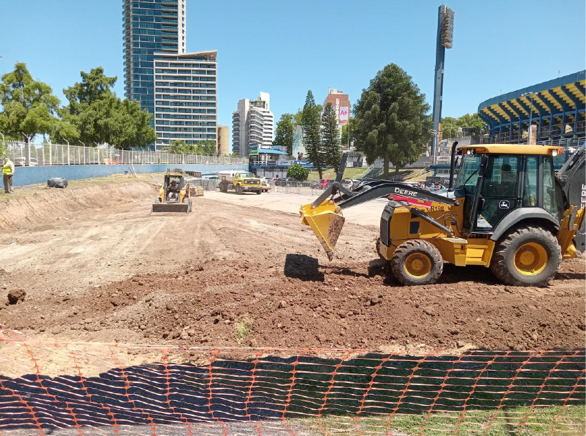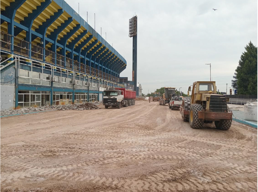 1.2 DEMOLICIONES Y TAREAS DE MOVIMIENTOS DE SUELO: Se adecuó Puerta 5 a los fines de generar un ingreso único a obra, y darle mayor comodidad al ingreso del público de ese sector, y se comenzó a montar obradores. Se quitaron los árboles de la zona de proyecto y se realizó la adecuación del suelo en el sector de ampliación a los fines de recibir las fundaciones del proyecto.