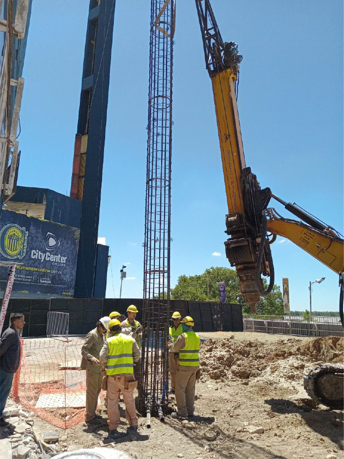 1.3 FUNDACIONES: Se comenzaron las tareas de pilotaje (148 pilotes) de la estructura incorporando a la obra tres piloteras y se trabajó durante el feriado a los fines de avanzar lo más rápido posible. Asimismo, ya se está trabajando con el armado de cabezales y tinteros que completan las fundaciones